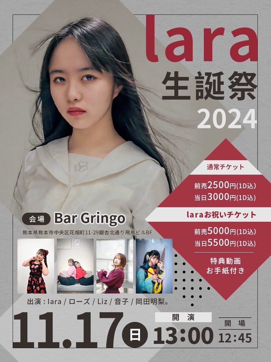 - 11月17日→【熊本】iara生誕祭、BAR Grimg