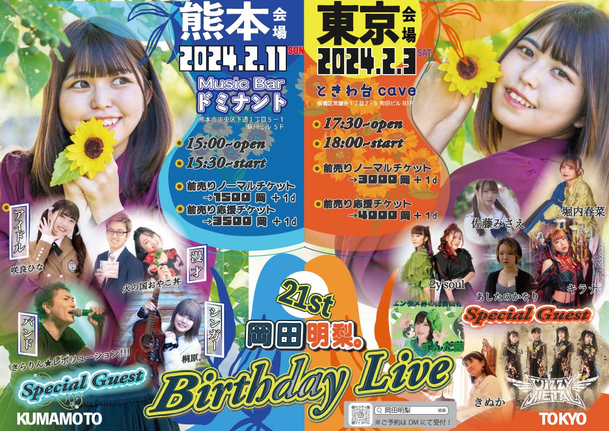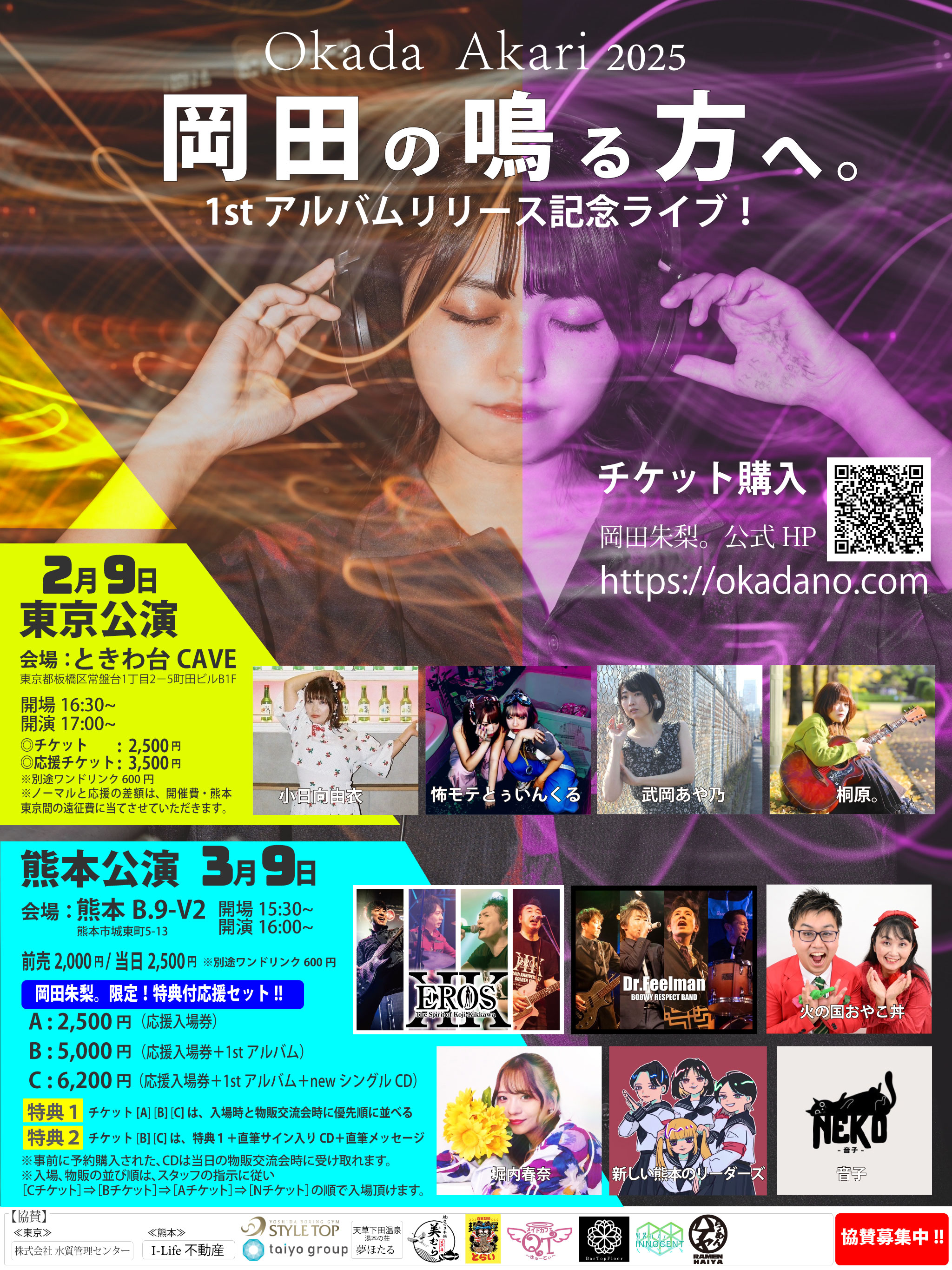 - 3月9日→【熊本】熊本B.9-V2 岡田朱梨。~1stアルバムリリース記念ライブ~>[チケット予約]