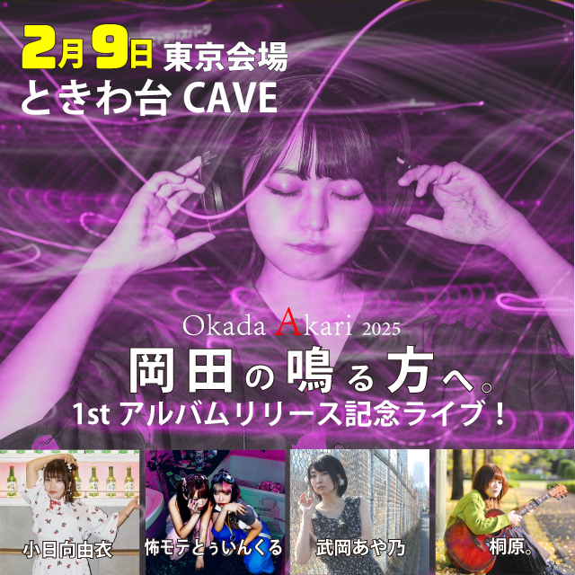 - 2月9日→【東京】ときわ台cave 岡田朱梨。~1stアルバムリリース記念ライブ~>[チケット予約]
